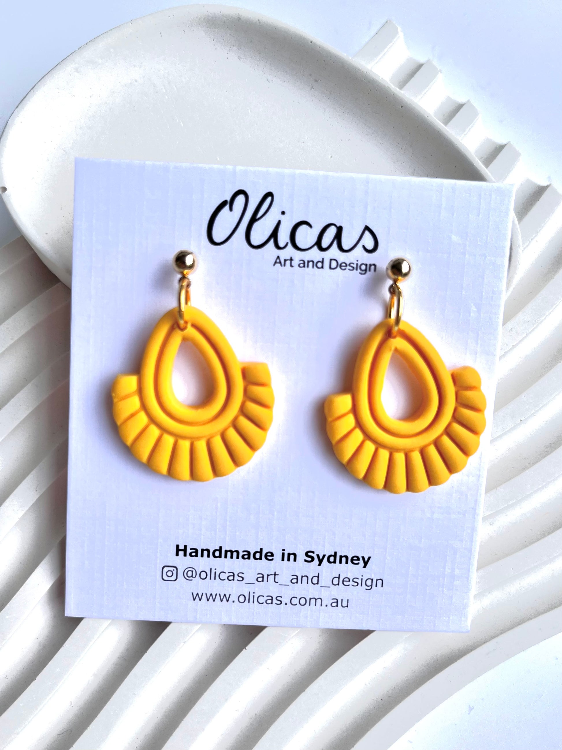 Handcrafted with Care in Sydney Each pair of earrings is handmade with attention to detail. From conditioning the clay to designing, cutting, and assembling each piece, every step is carried out with care, resulting in a unique creation. Due to the handmade nature, slight variations in shape add to the charm and individuality of each piece.