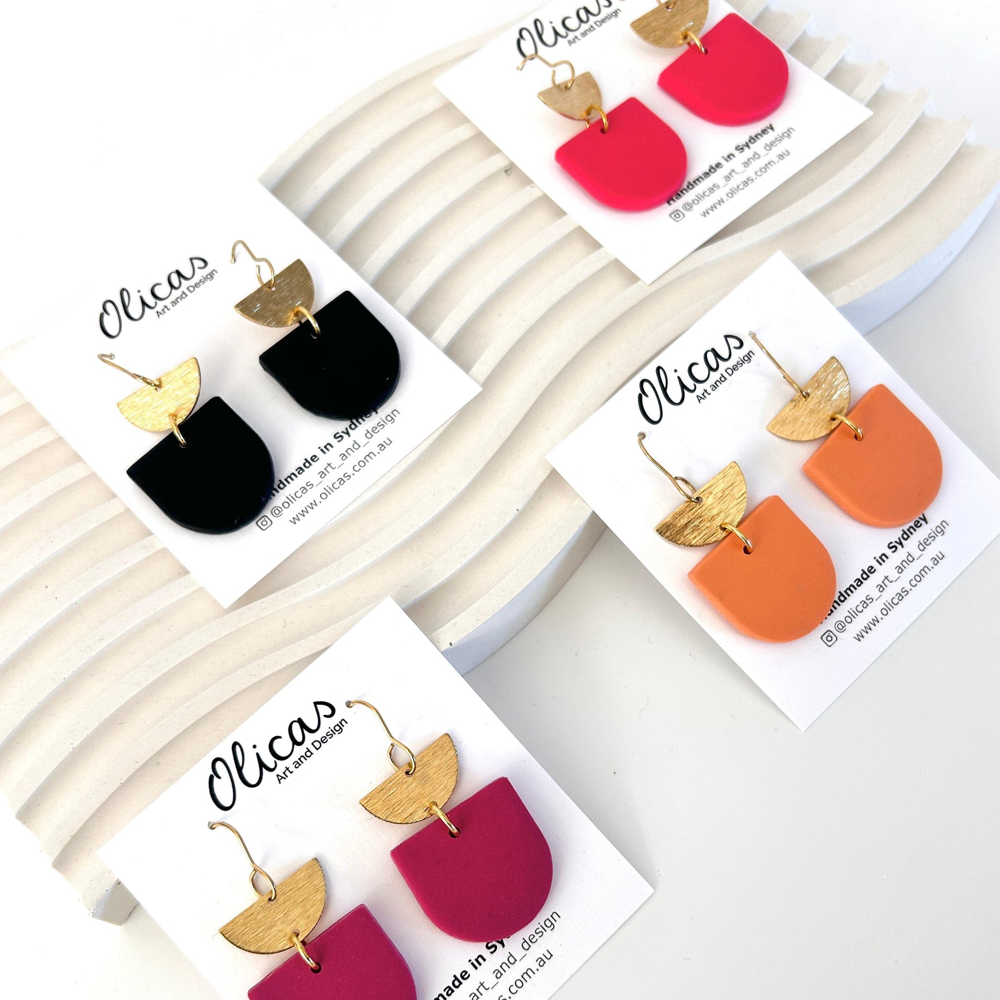 Handcrafted with Care in Sydney Each pair of earrings is handmade with attention to detail. From conditioning the clay to designing, cutting, and assembling each piece, every step is carried out with care, resulting in a unique creation. Due to the handmade nature, slight variations in shape add to the charm and individuality of each piece.