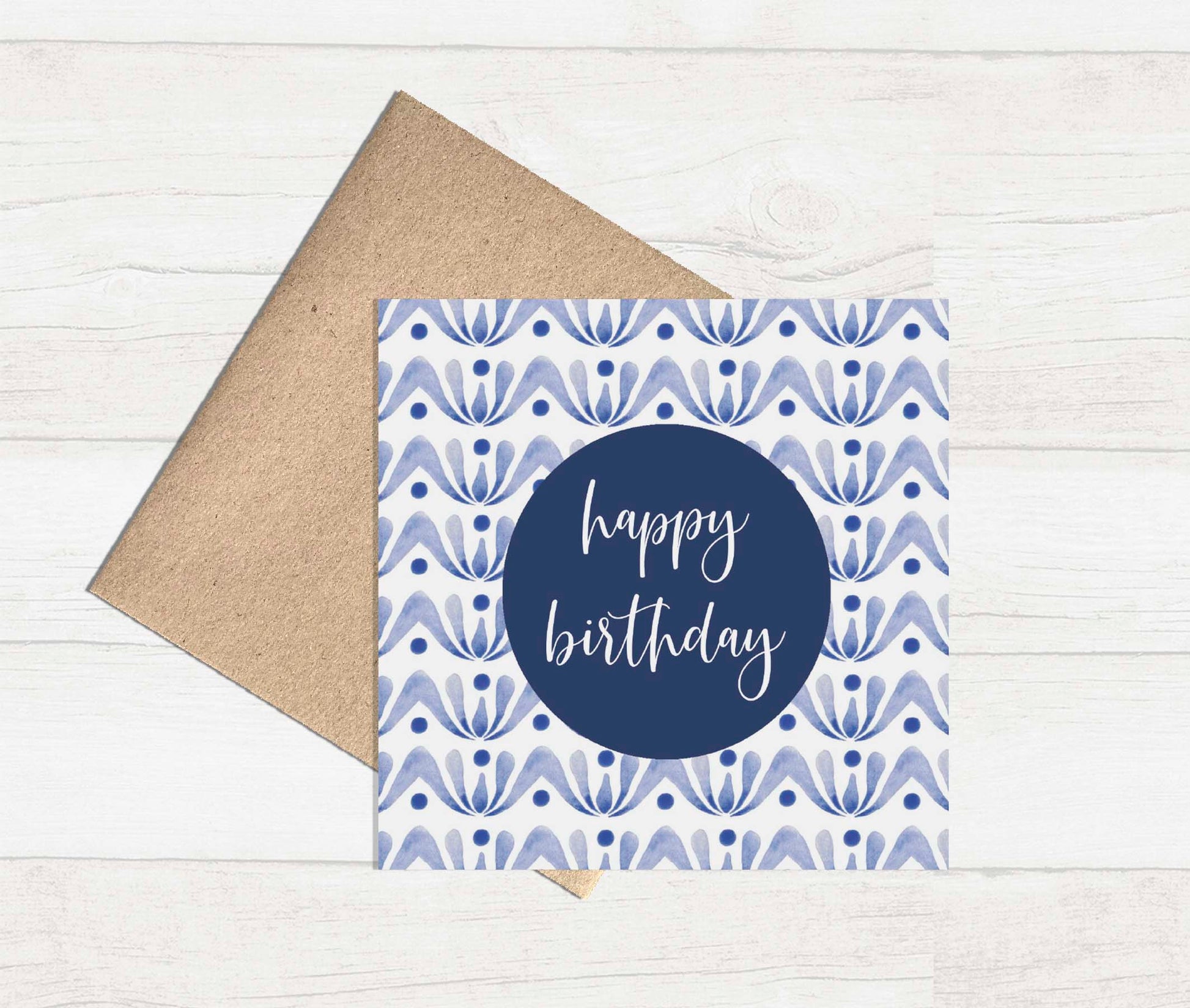 Watercolour Greeting Card - Blue Pattern Happy Birthday